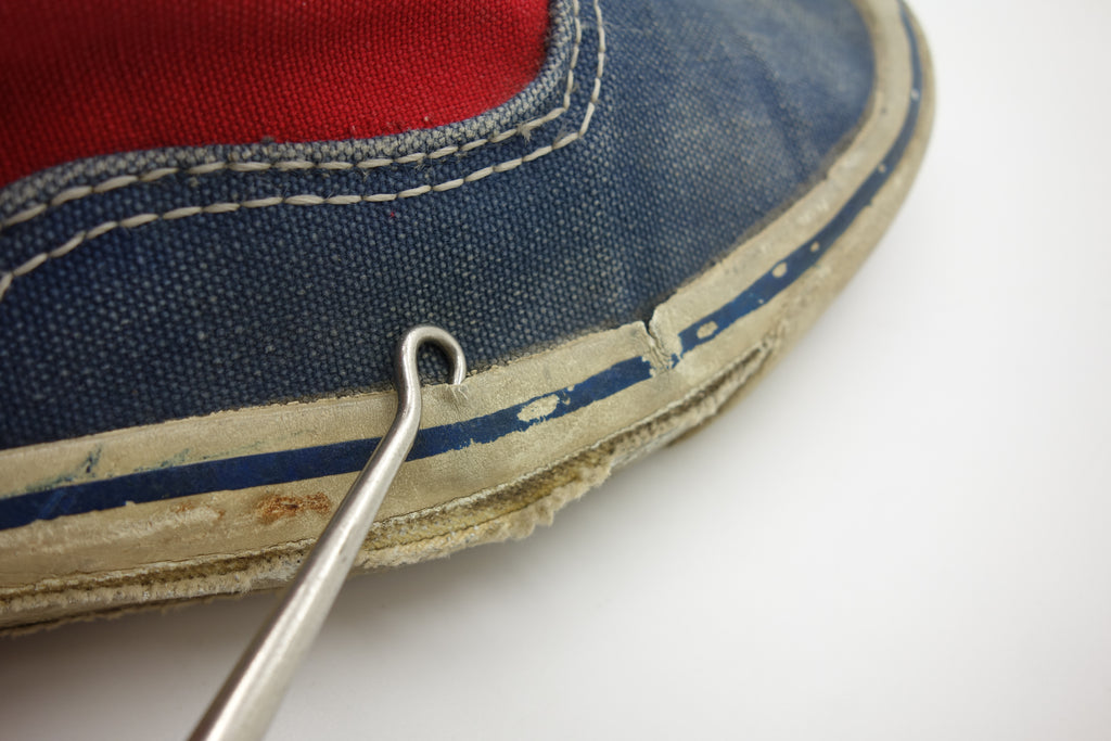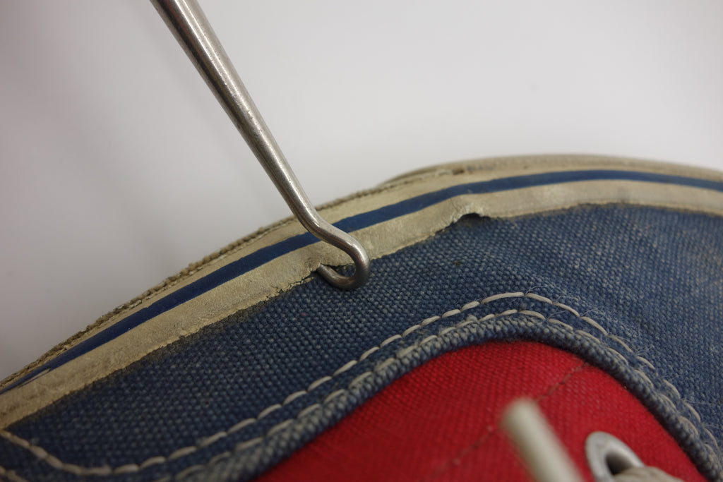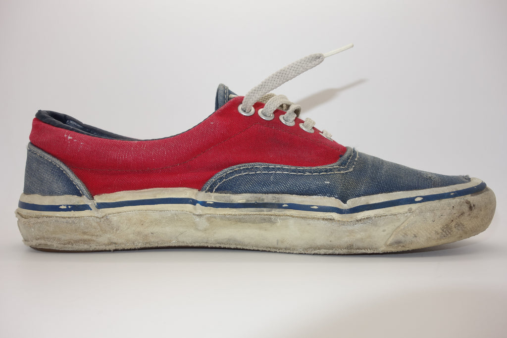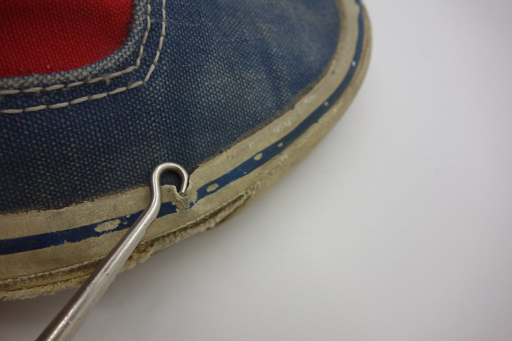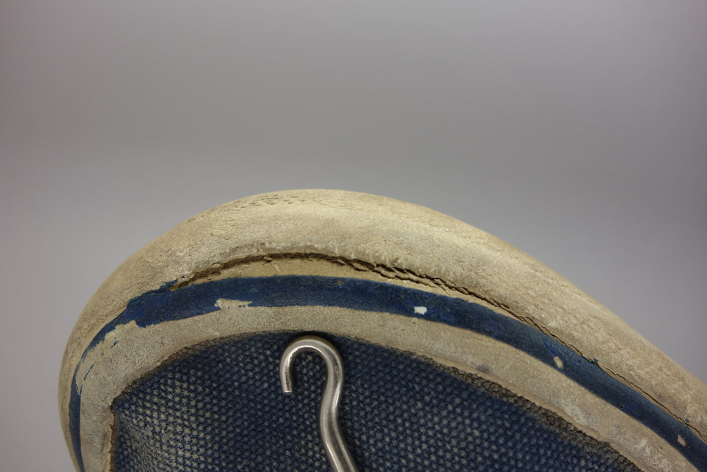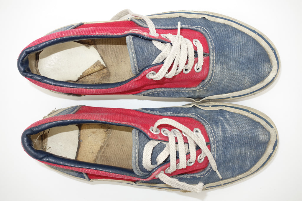 good used condition. well-loved yes but rubber remains soft & flexible (but for small areas at heels) despite being somewhat dry & crusty. structurally however they are sound with no wear to insole or internal heel counter. the start of 1 small hole at left big toe, but denim-like uppers will maintain. from experience these will hold up to normal wear. laces not original. size not visible but confident of US7.5 if not US8.
