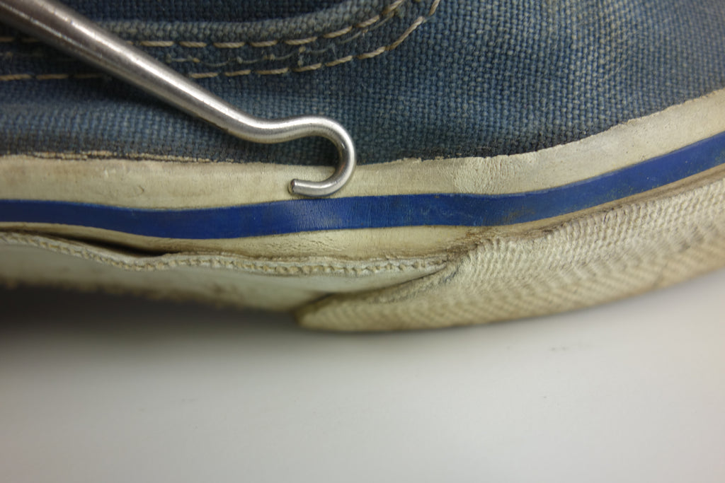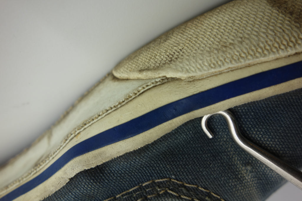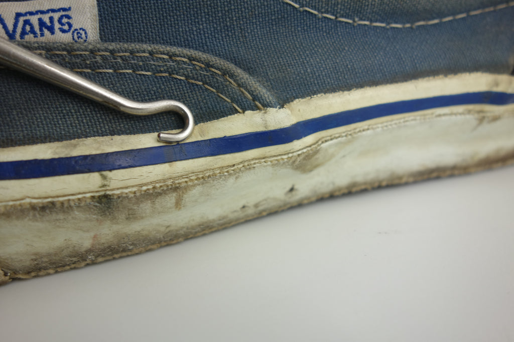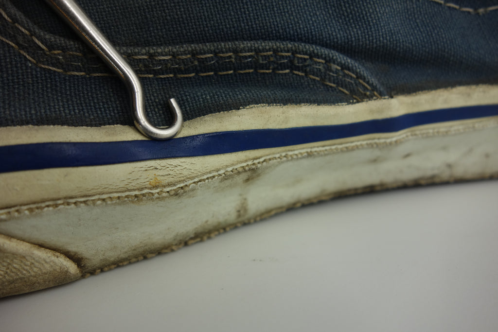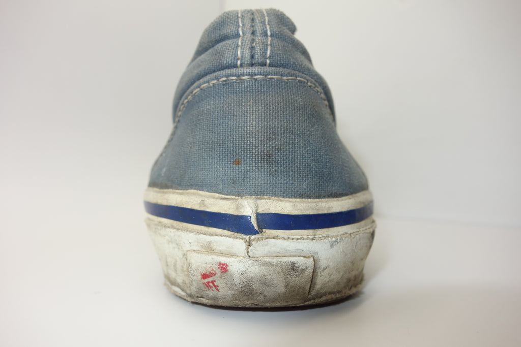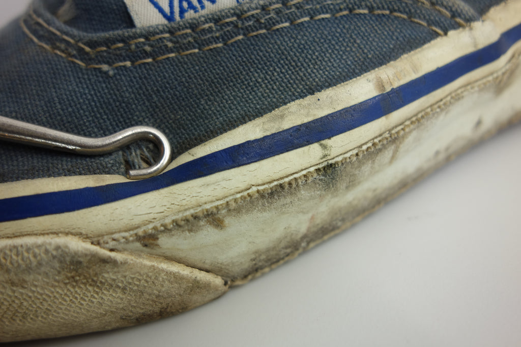 decent used condition. the white rubber first foxing stripe area is somewhat crusty however remains soft. some stress cracking & separation from uppers at bends & the start of holes at pinky toes. the collar is pretty pulped with vinyl splits, & visible foam. size is not visible however very confident of US7.5