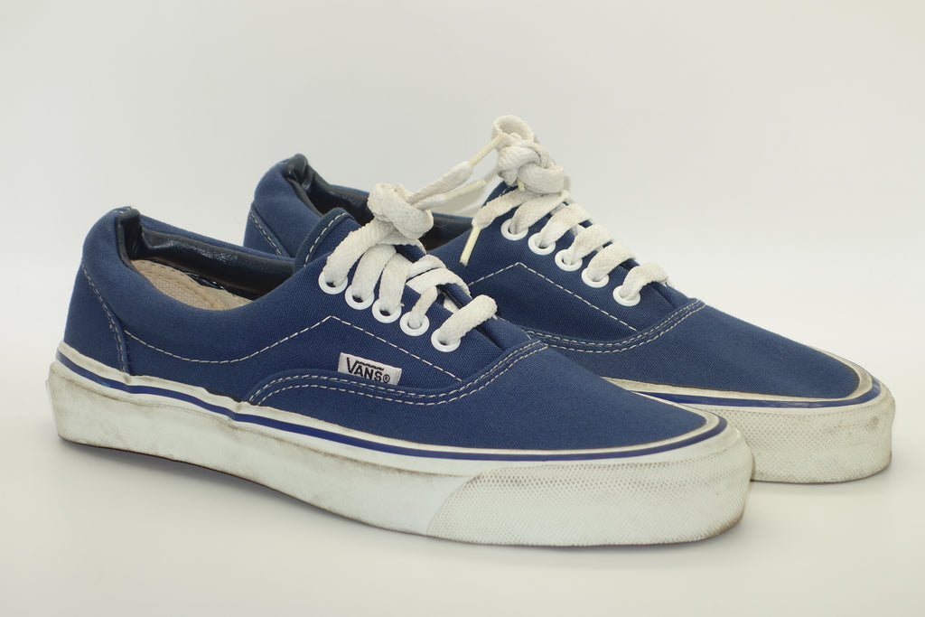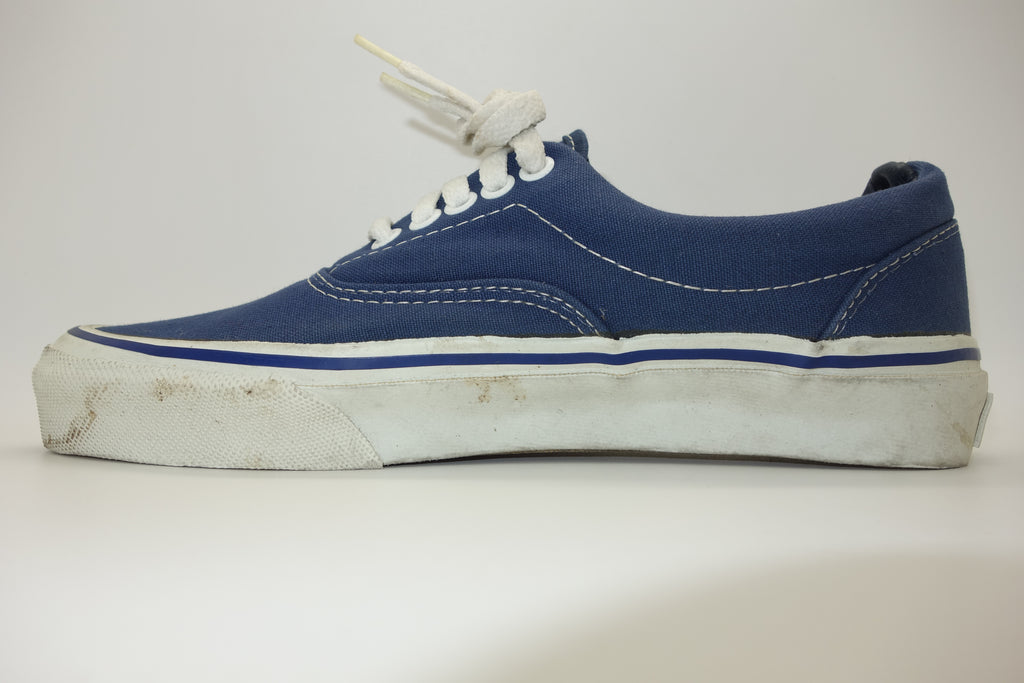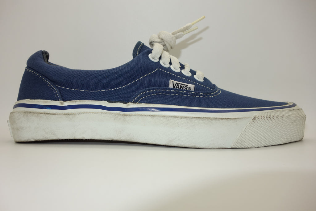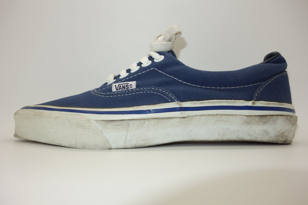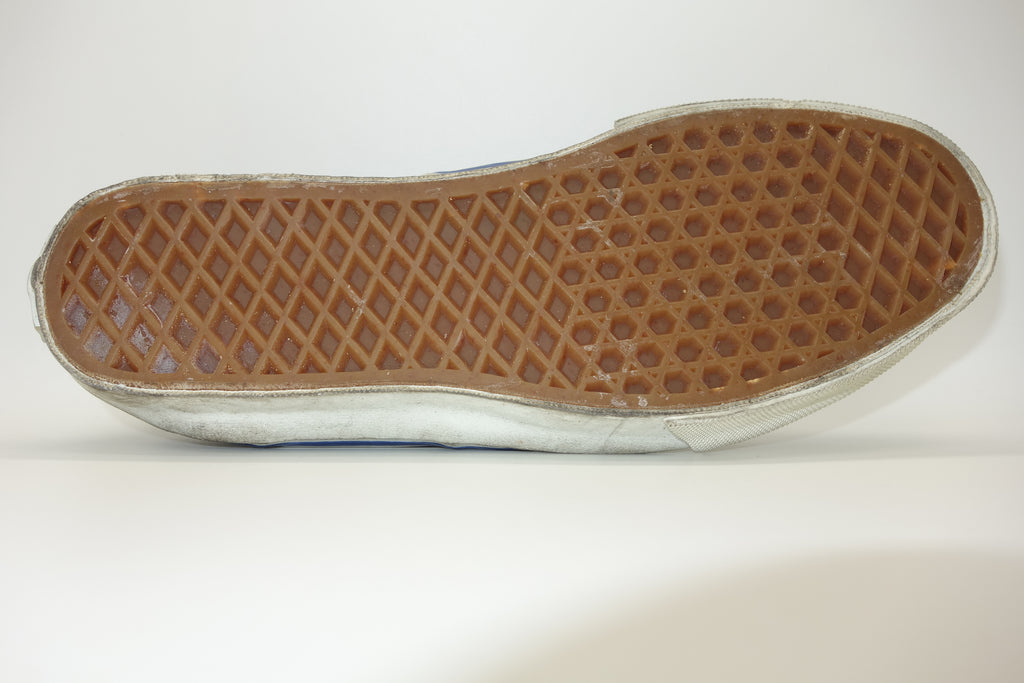 unworn however these were switched at birth & later matched together. the left shoe with the heel insert is slightly earlier than the right shoe with the box logo. both shoes look near identical & the difference should not be palpable during wear. the left shoe shows a little more storage wear to the white rubber however both shoes remain soft & flexible.