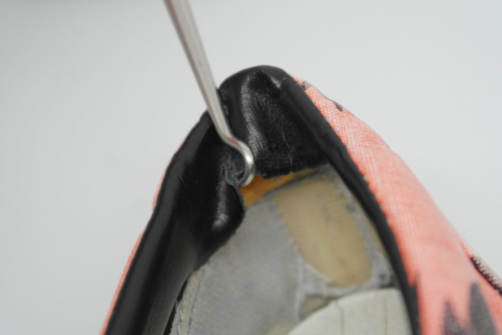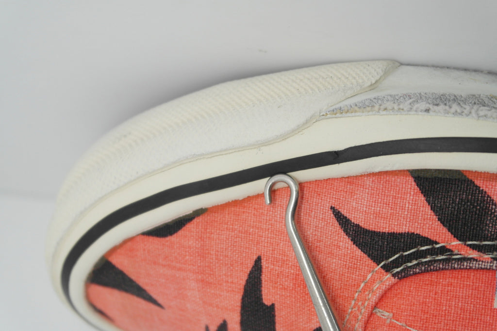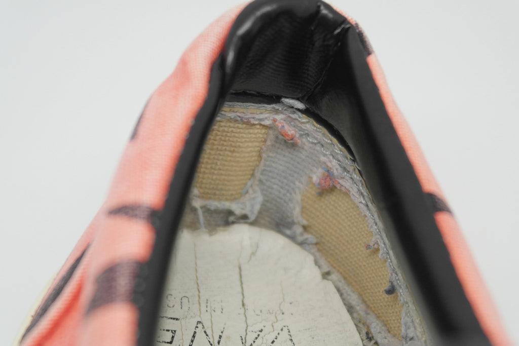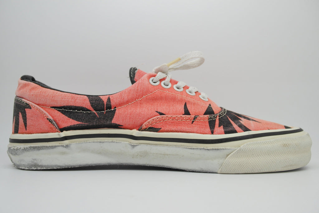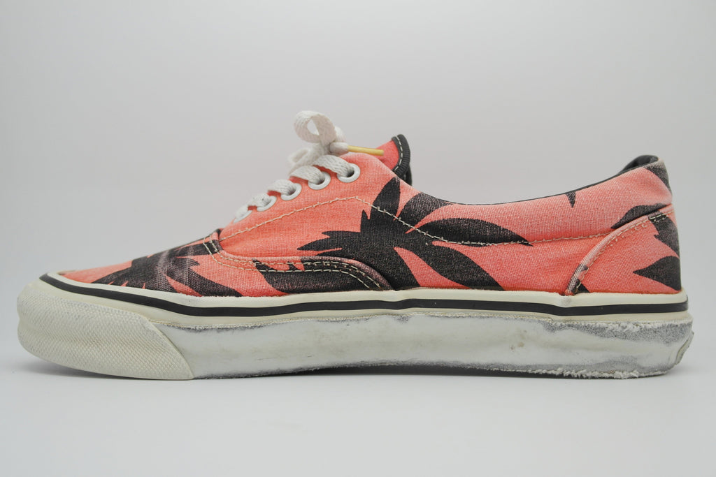 very good used condition. most liekly machine washed but rubber remains soft & flexi. some separation between midsole & uppers at toe creases. minimla stress cracking between bumper & first foxing. piping has separated from left tongue. wear to lining of internal heel cap but no cracking or breakdown. split to vinyl collar of left heel exposing foam. footbed & inner lining unaffected however some minimal wear to internal toe cap through to canvas. colour is bright orange & more vivid than photos suggest. box is of correct era & print but is incorrect size & colourway