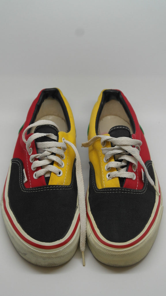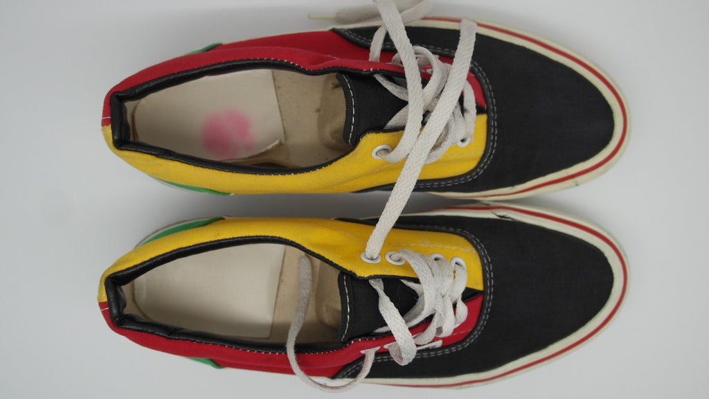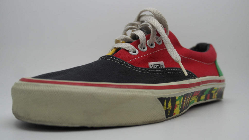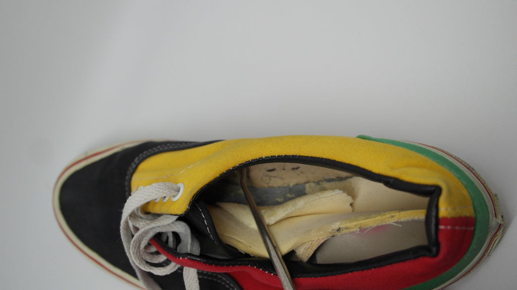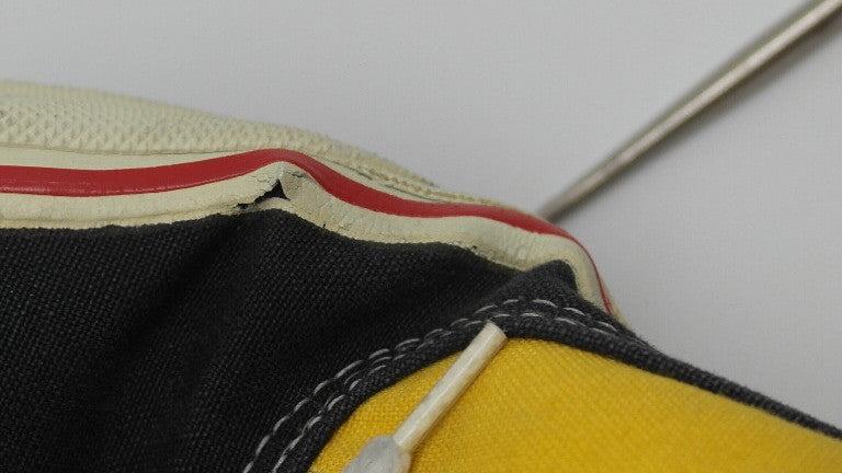 very good used condition. the rubber remains soft & flexible however shows some dryness & rubber separation between uppers, especially at the toe crease. this may or may not continue to crack & flake away however from experience will hold up to normal wear. the footbed of the left shoe has been toen away from the right hand side, but only half way,  exposing the mould underneath, however is an easy repair & again will not effect wear. lastly, the left rubber midsole shows some yellowing to the medial aspect & toe. wear at own risk!
