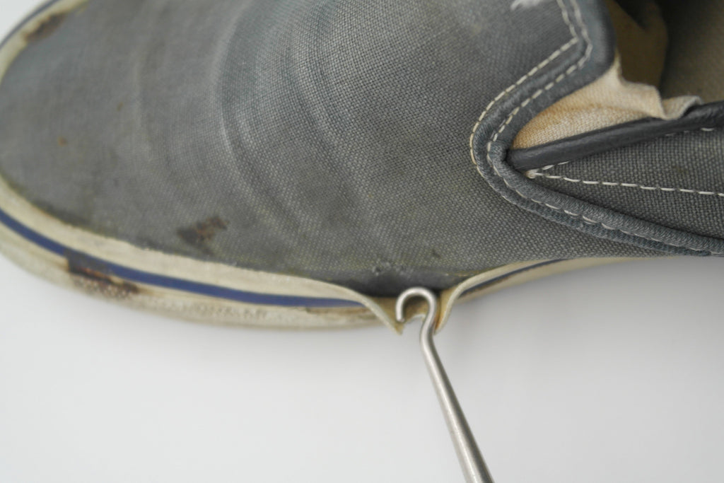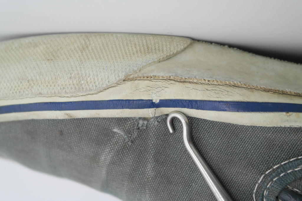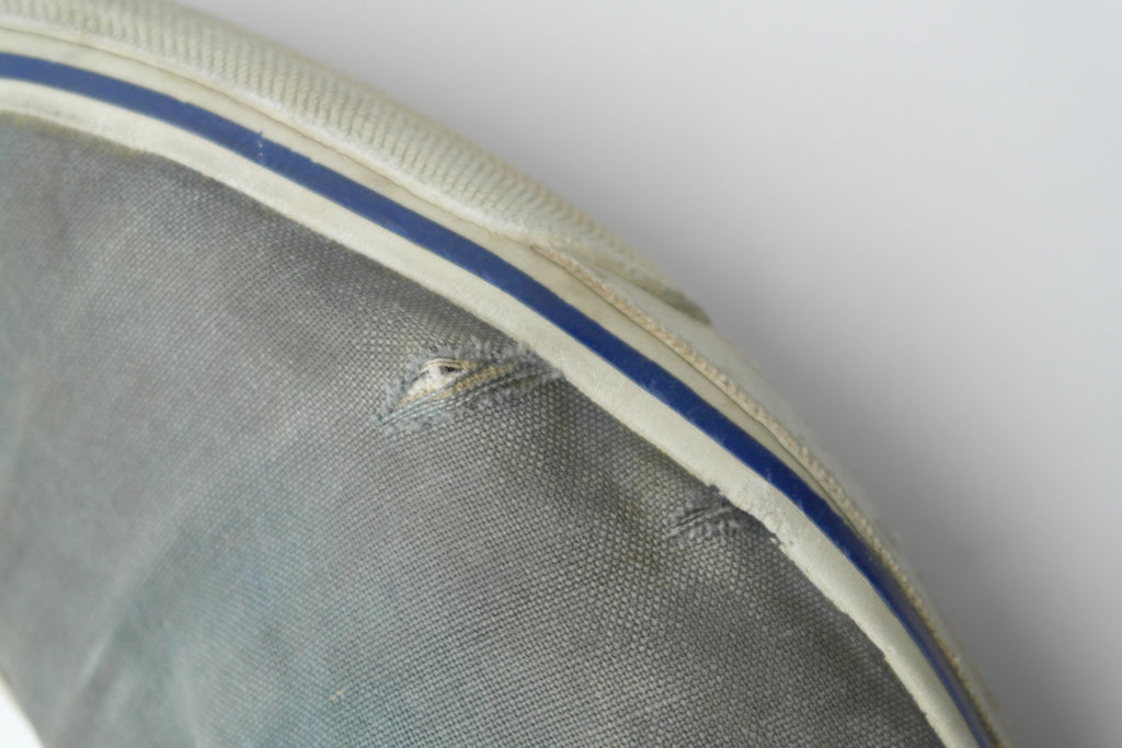 good used condition. seen significant wear but remain structurally sound. widepread canvas fade & some tearing to uppers however yet to penetrate canvas backing. rubber is somewhat dry but is soft & fleible. some separation with uppers at toe creases & widespread micr-stress-cracking from crush injury. internally sound but for some wear to internal toe cap & lining at toes. some splitting to vinyl collar & 1 central split to each internal heel counter.
