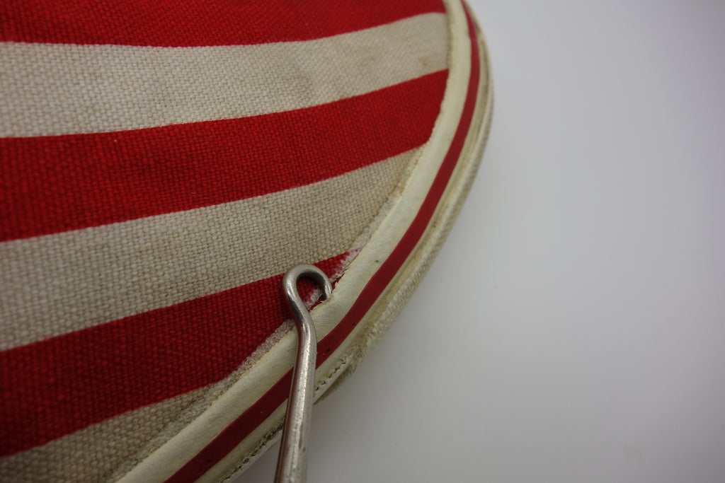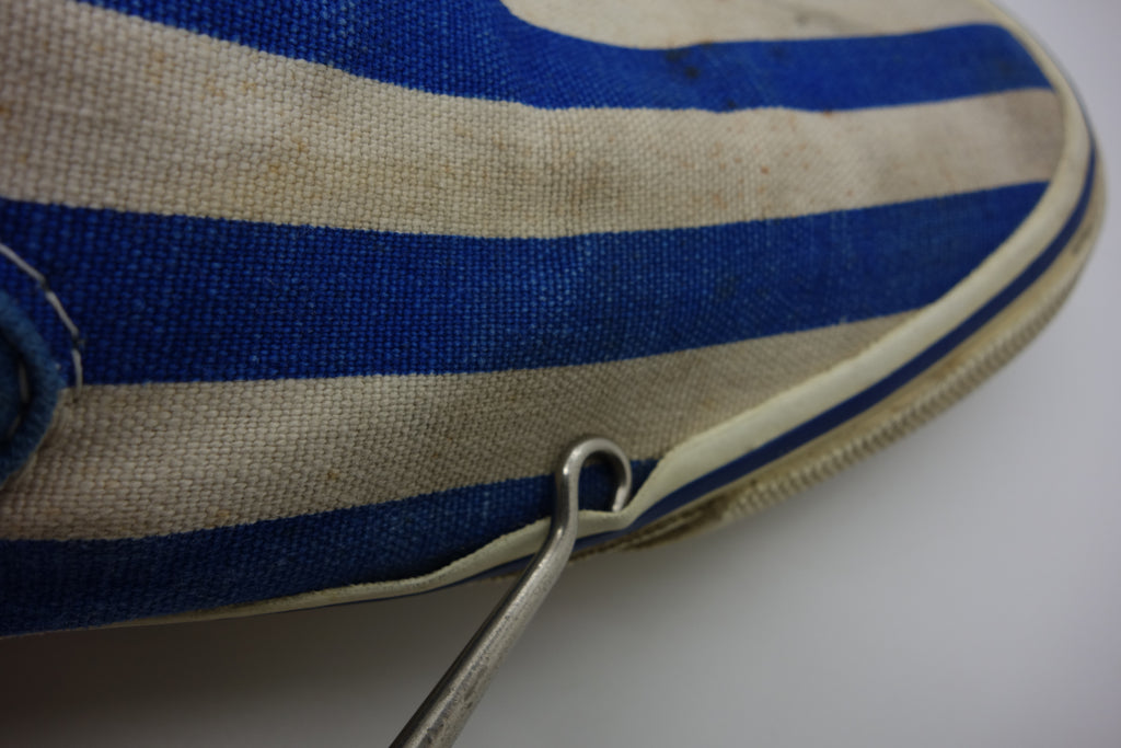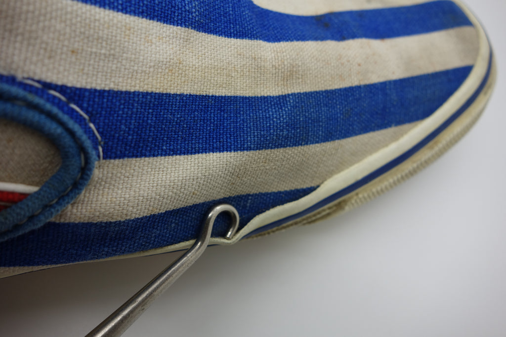 red/blue stripe toe/heel/medial quarter, red/blue tri check lateral quater