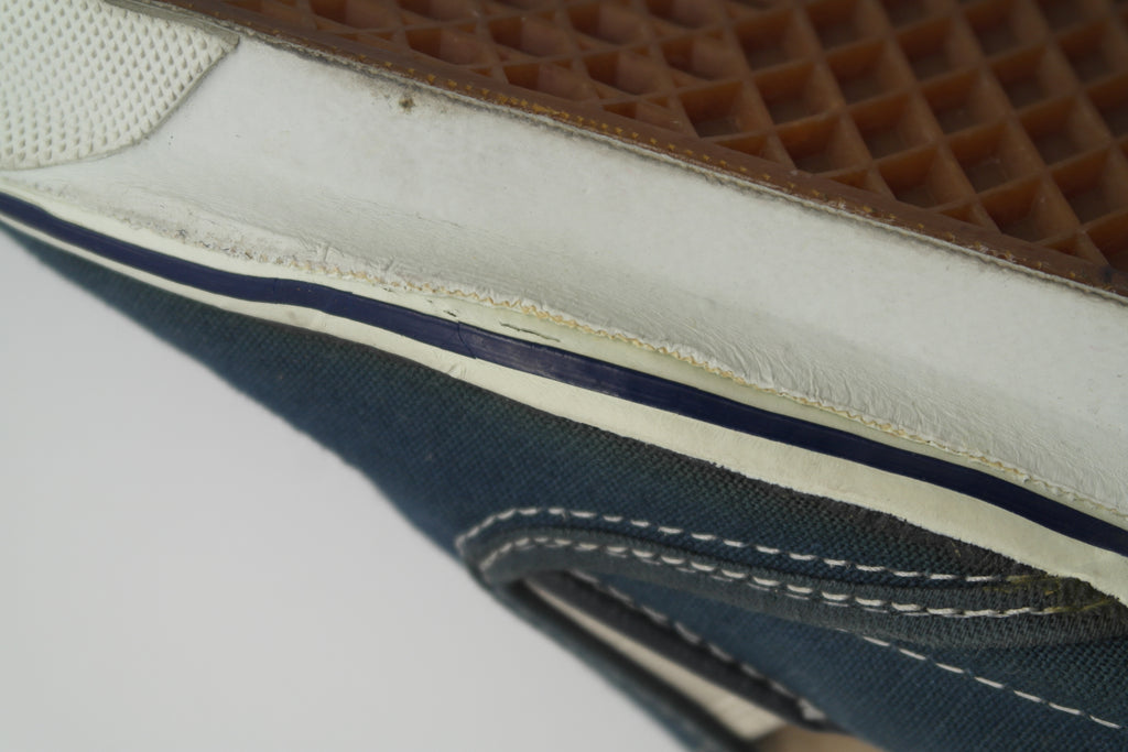 superb used condition HOWEVER THESE ARE DEFECTIVE! rubber cure/solidification has set in, cracking is evident & widespread loss of rubber will occur. only the first foxing is effected (foxing stripe area) & the waffle & friction itself will hold up to normal wear, perhaps apart from left medial arch. the first foxing however will flake away over time. the internal toe cap shows complete stiffening which contributes to rubber hardening at toe. the foundation of the shoes will hold up over time however with significant loss of rubber chunks. wear at own risk