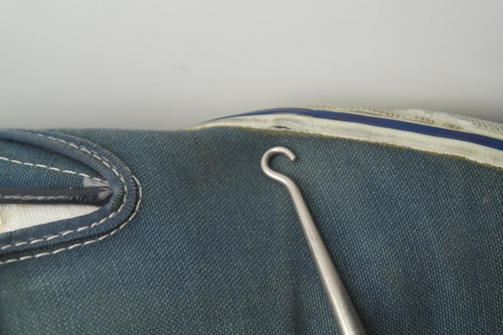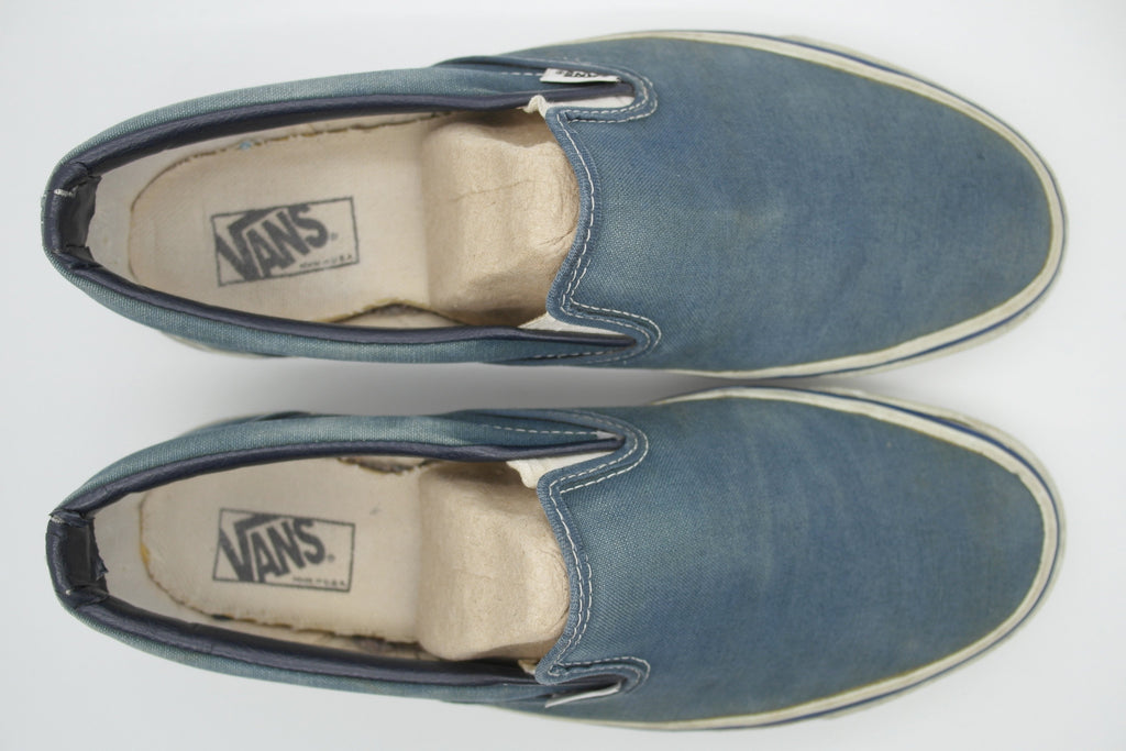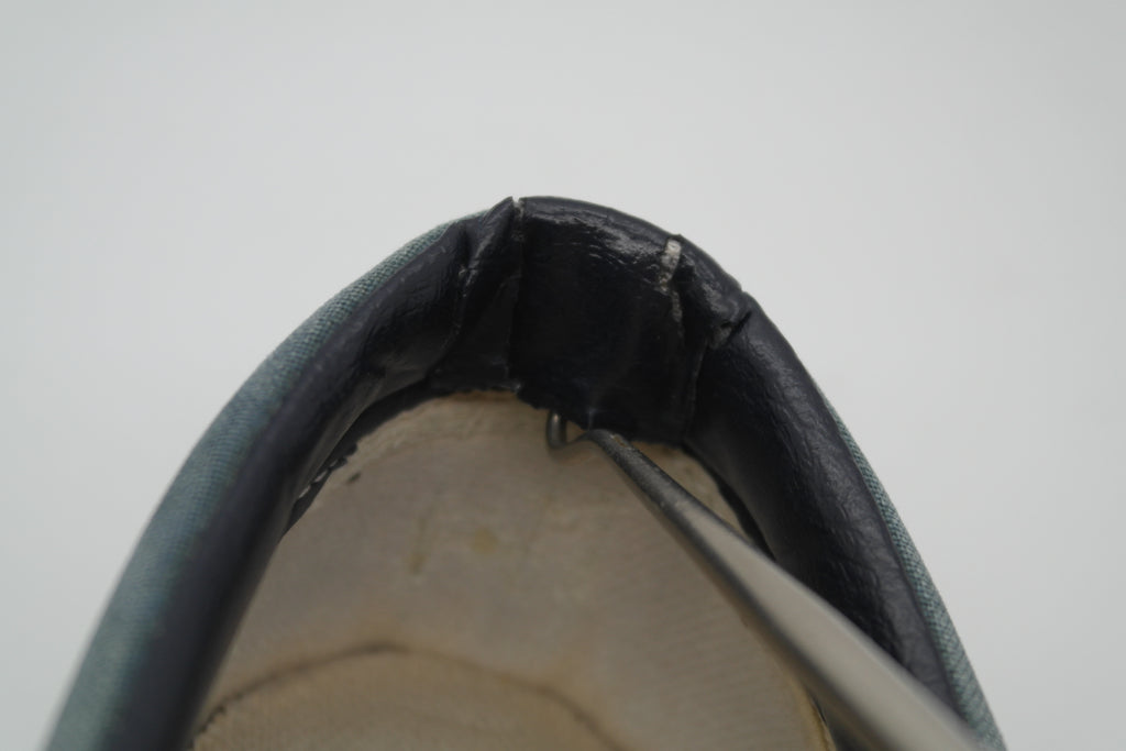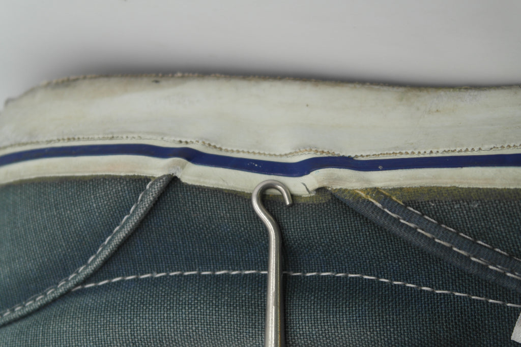 very good used condition. rubber remains soft & flexible with the beginnings only of separation between uppers & rubber at toe crease, & minor micro-stress-cracking from crush injury. some wear to intenral toe cap & lining at pinky toes. several splits to vinyl collar at heel & tear at base however foam still hidden.