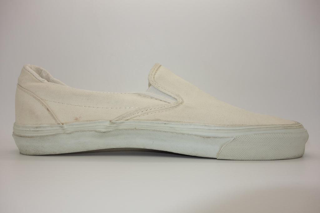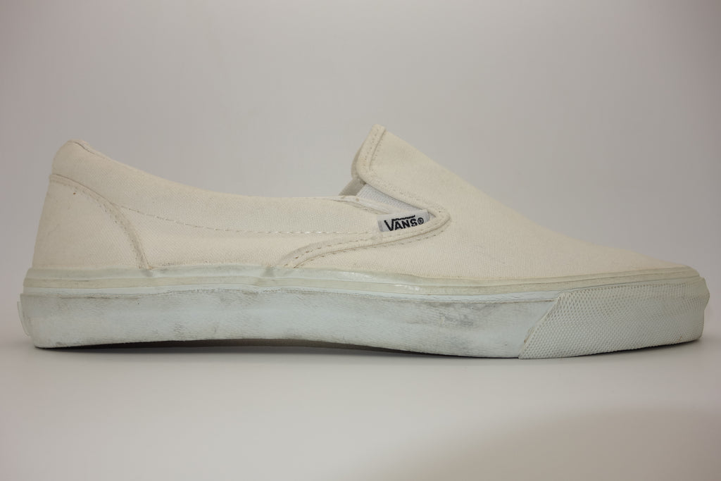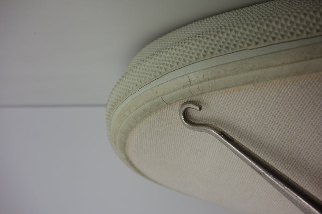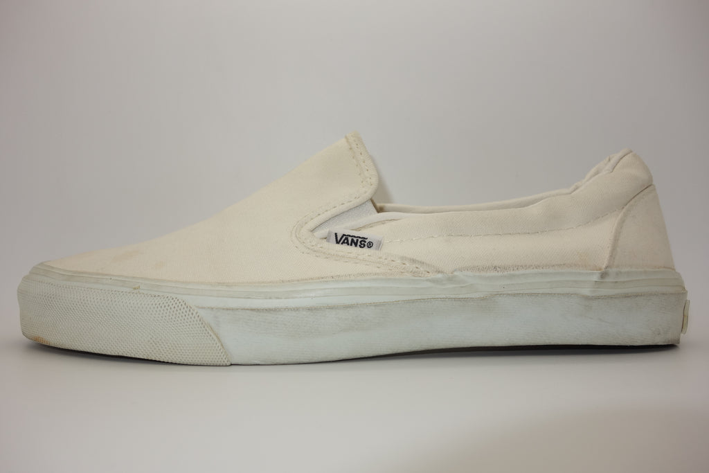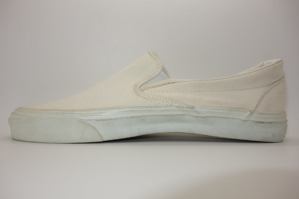 superb used condition. worn a few times only. the right shoe saw very short term exposure to elements as display model with resulting rubber dryness & minor micro stress cracking of first foxing, however rubber remains soft & flexible. light dusting & storage wear only. 1 sticky area on vinyl insert will wash off.