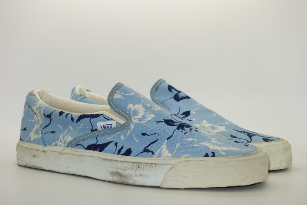 unworn with very light storage wear & 1 water blemish on right toe. expo on box possibly indicates display model. all rubber remains super soft & flexible. og tissue paper still stuck to soles will peel away. box is knackered. 1 end is missing & the other end is split down 1 side.