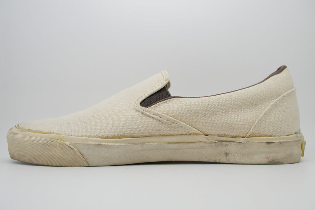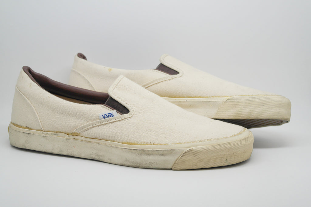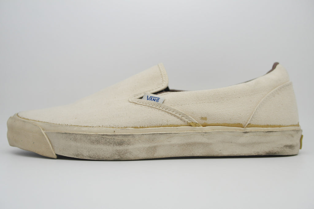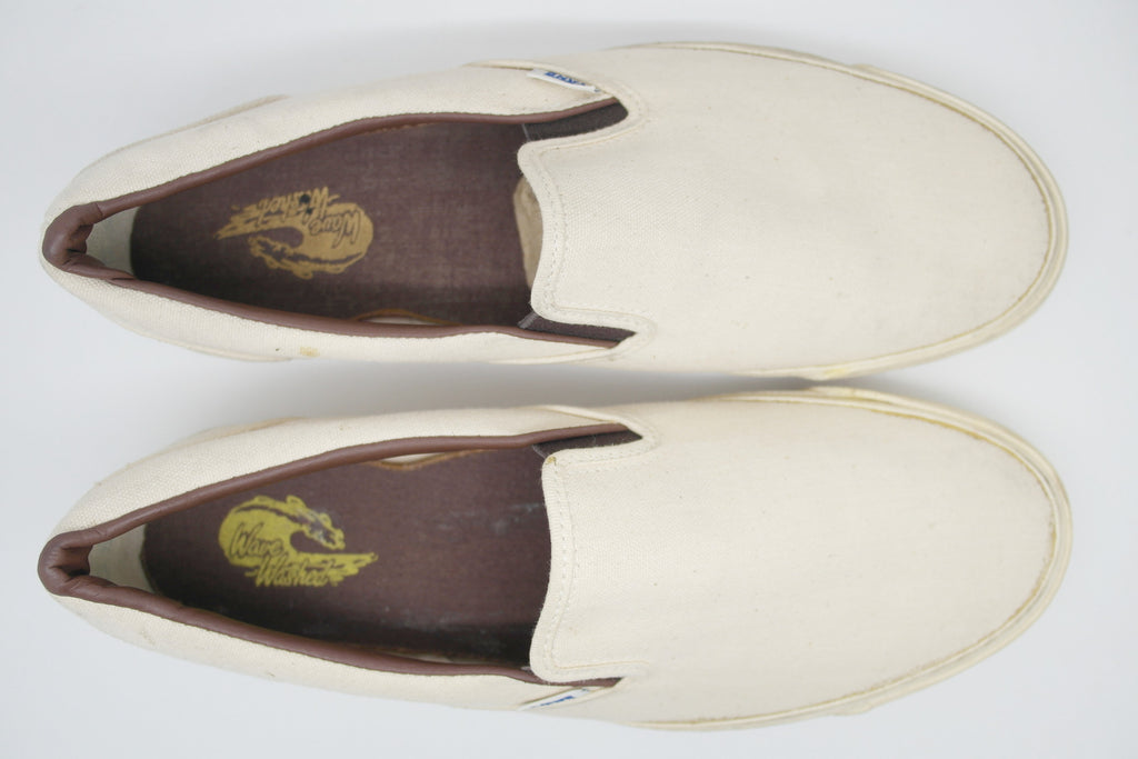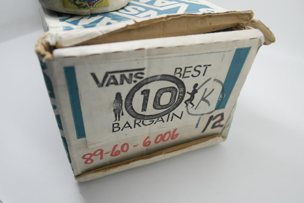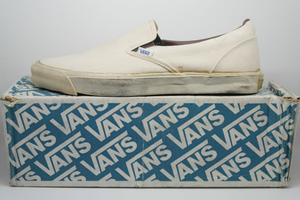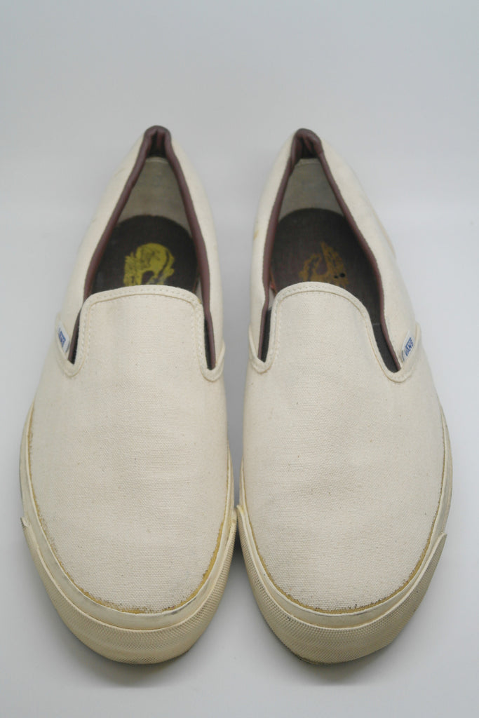 unworn with storage wear only. the box is of accurate era & size however for a different model, & shows some damage. slip-ons fit big in general & US12.5 was never available as a size but measure close to this mark. check measures