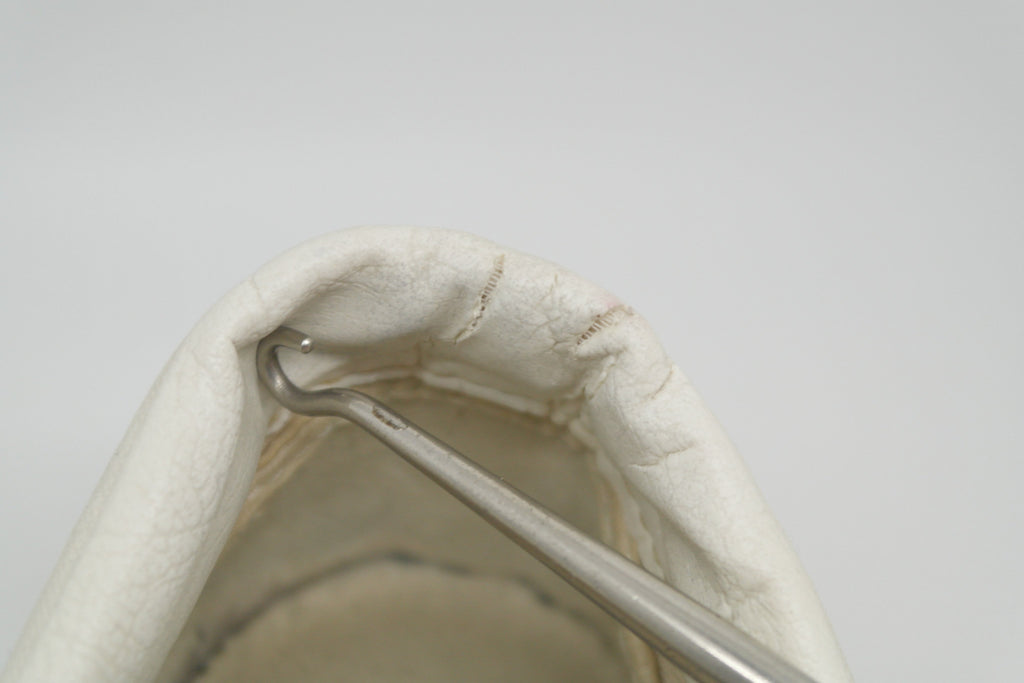 very good used condition. minor separation between rubber U uppers at toe creases & minor stress cracking between bumper & first foxing