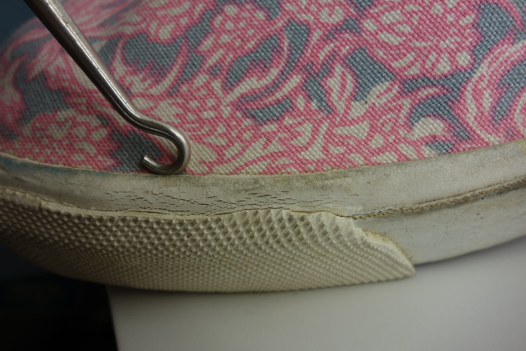 unworn with very light storage wear & dusting. all rubber remains super soft & flexible, despite minor stress cacking from crush injury. og tissue paper still stuck to soles will peel away. 1 small area of wear to piping, plus some cobwebs on the uppers. box is well knackered with splits down 1 side at the end. from the 3 pairs of pink malibu listed in US13, these are the poorest condition.