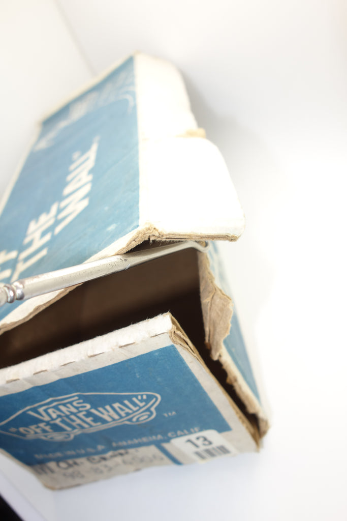 option c is pictured in full & is unworn with very light storage wear & dusting. all rubber remains soft & flexible, despite minor stress cacking from crush injury. og tissue paper still stuck to soles will peel away. box is well knackered with splits down 1 side at the end. from the 3 pairs of brown malibu listed in US13, these are the poorest condition.