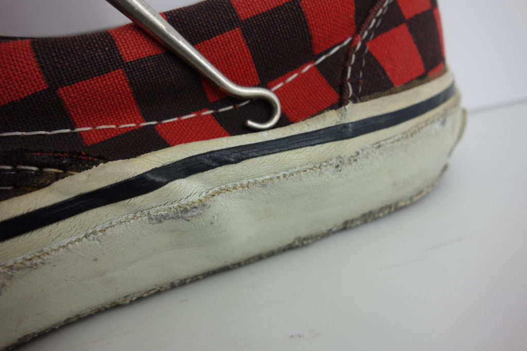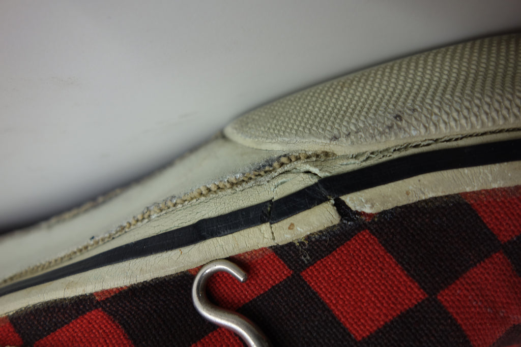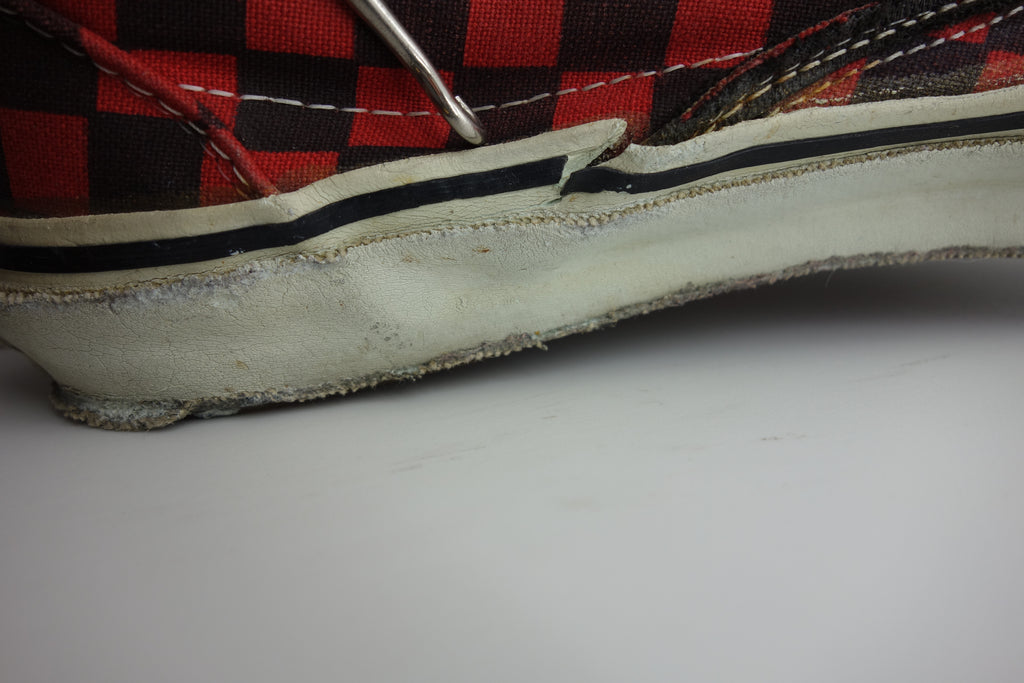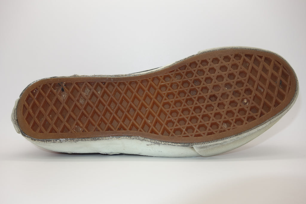 good used condition. i wanna say the rubber is more dry than it is hard however there is widespread solidification to the first foxing (stripe area) whereby cracking & flaking of rubber will continue. the midsole friction & waffle itself are unaffected. there will be loss of rubber so wear at own risk