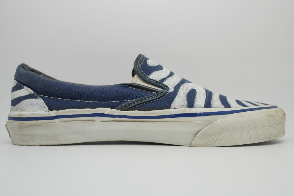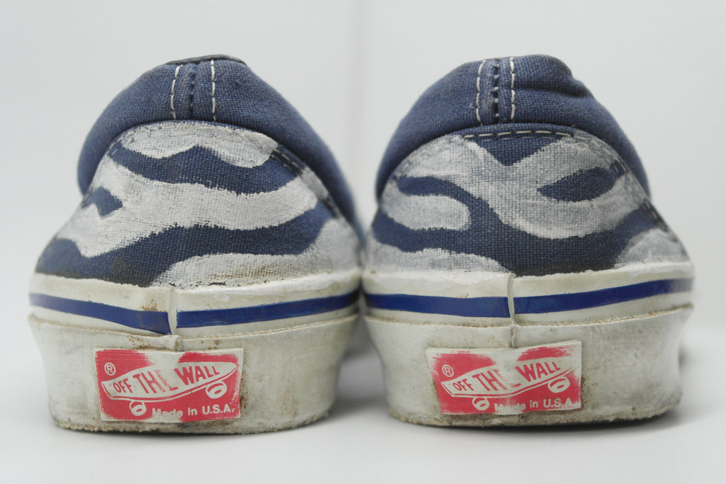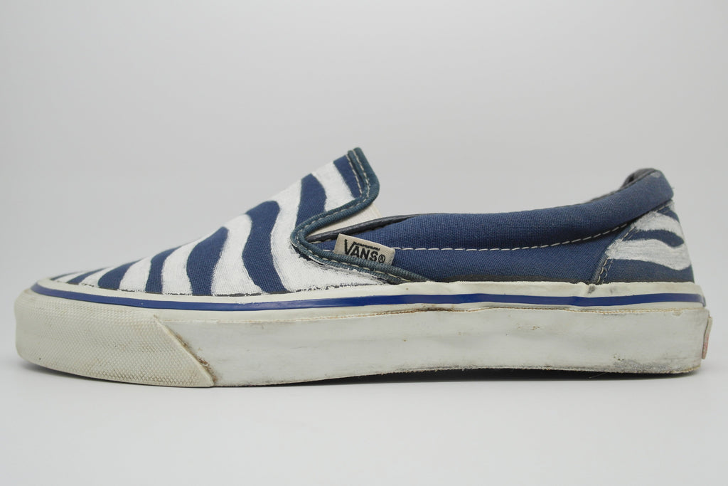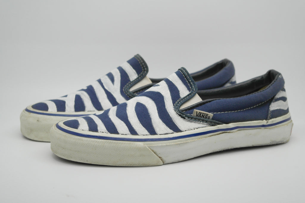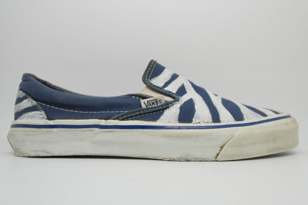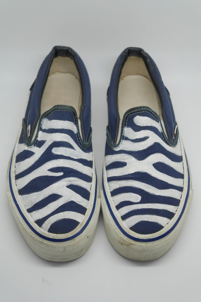 these were solid navy however were diy customised by hand of previous owner. it looks like acrylic paint, which has overflowed slightly onto the rubber. the rubber is unaffected