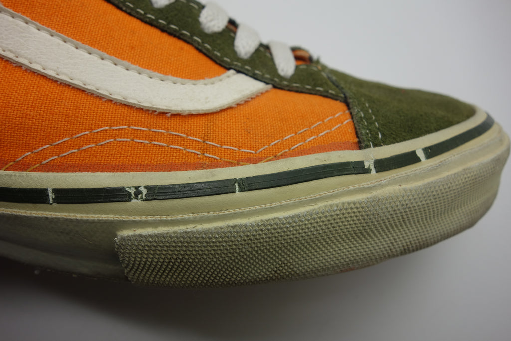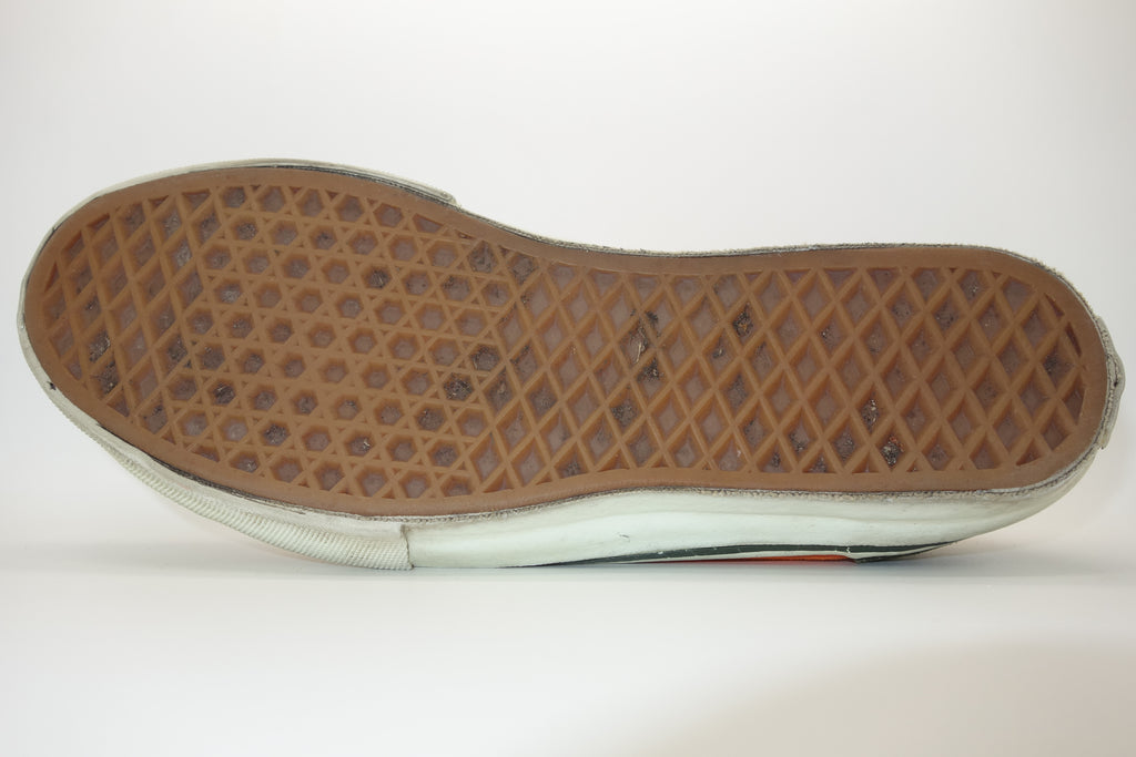 good used condition. the foxing stripe has completely cured & widespread loss has occurred. resulting erosion into the white rubber first foxing is shown, however this area remains relatively soft. some rubber loss will still occur however i feel the worst of the damage has been done. the padded tongue foam has perished & leaves a lumpy residue at the base of the tongue but will be barely noticeable. wear at own risk!