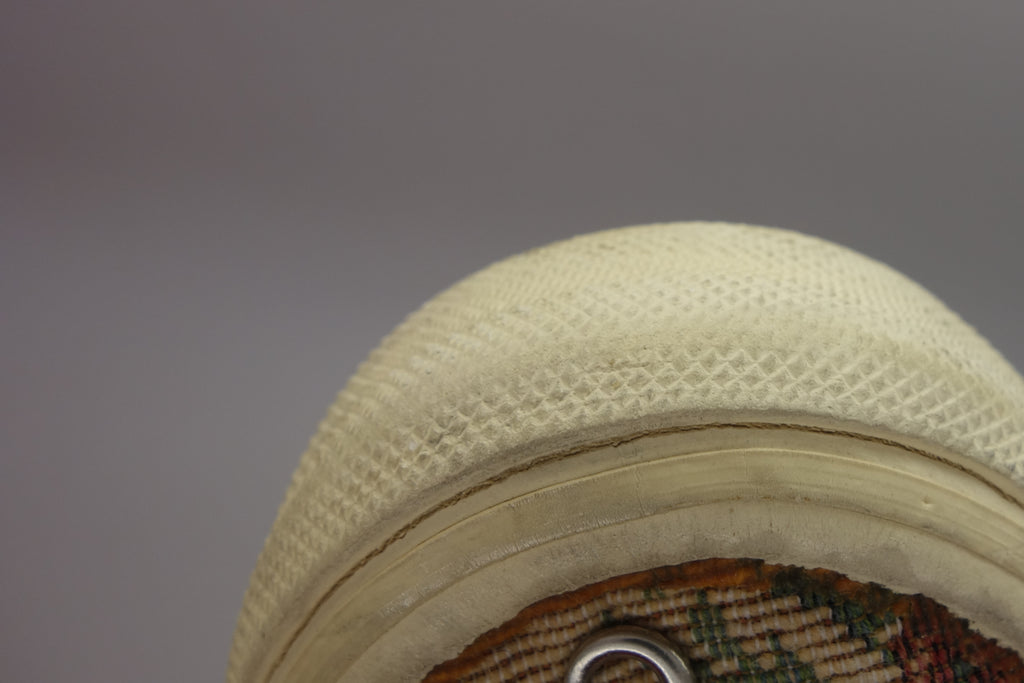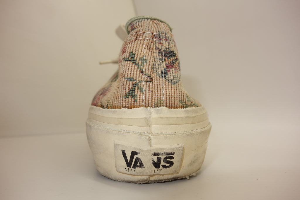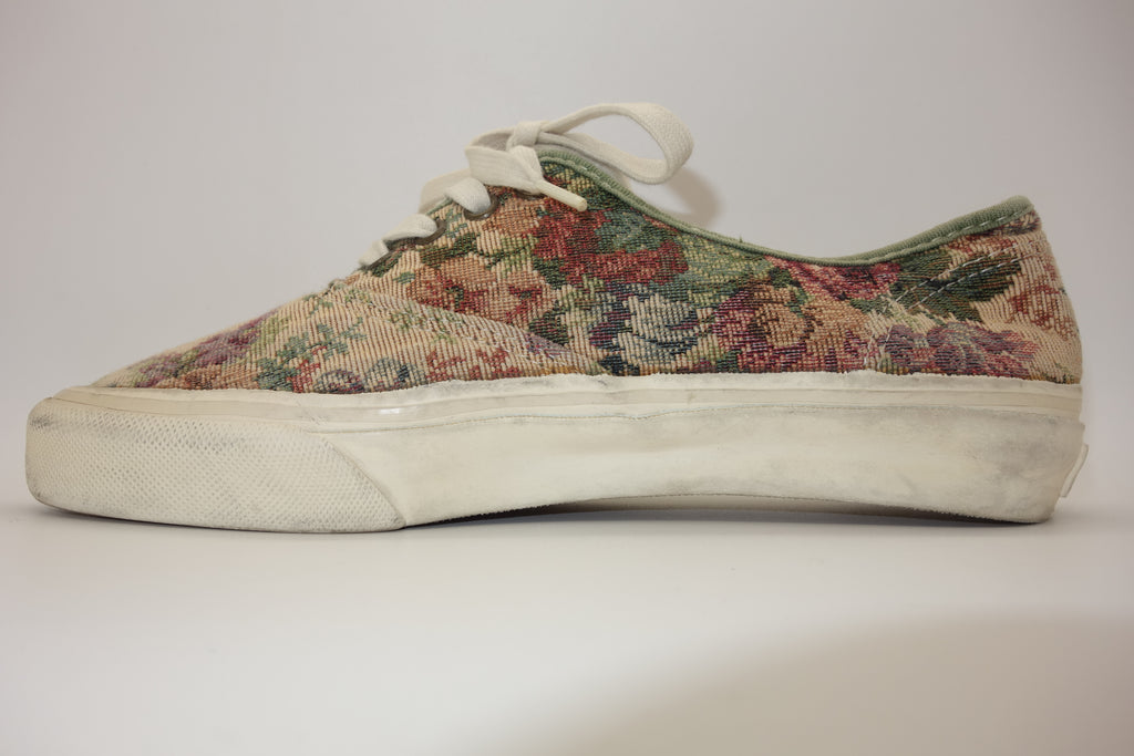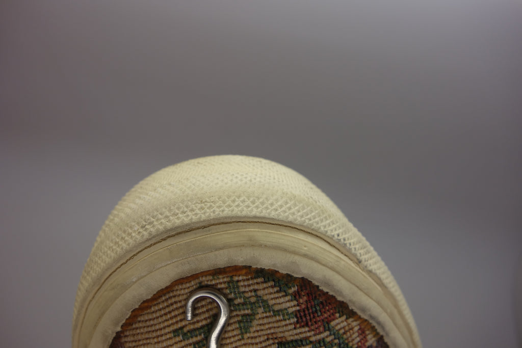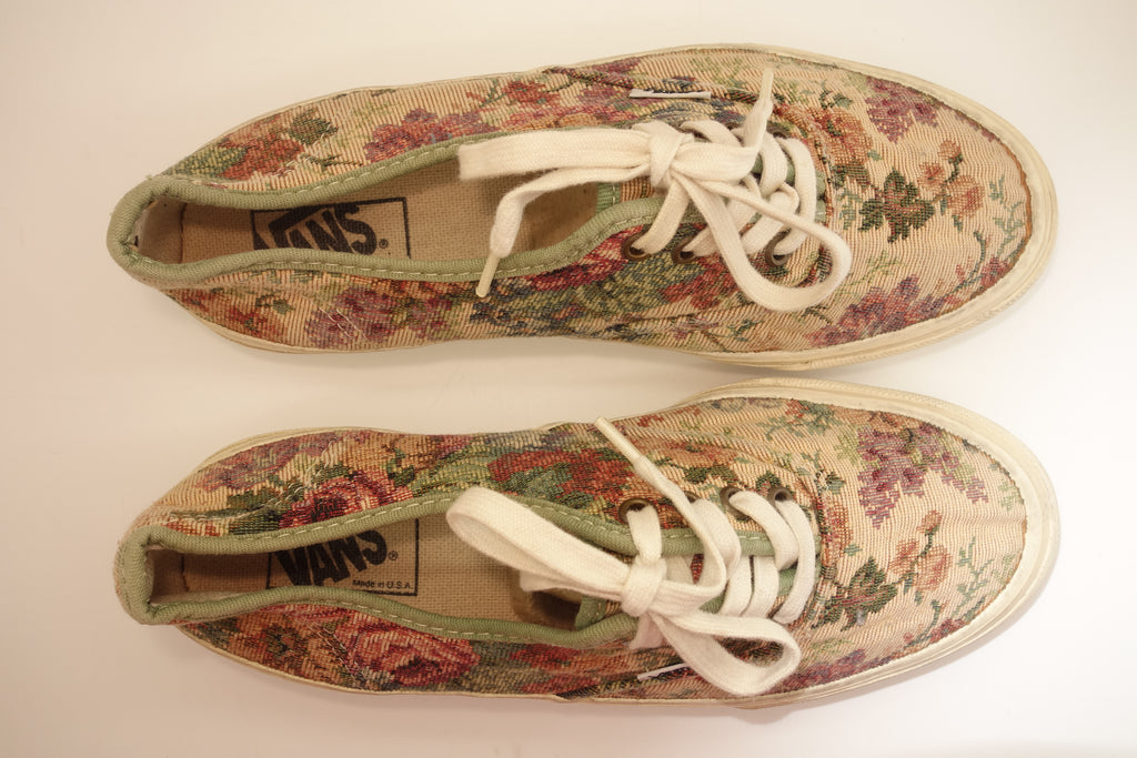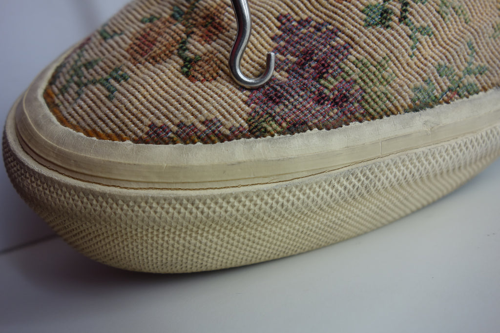 very good used condition. all rubber remains super soft & flexible. there is some dryness to the first foxing towards both toes & wrinkling upon bend however from experience the malleable & supple ecru rubber scene will hold up to normal wear. both internal heel counter are misshapen but still intact & flexible. womens sizing use a narrow last & best suit female feet or mens with narrow-normal feet.