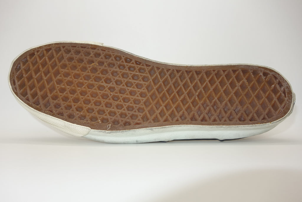 unworn. the left shoe shows storage wear however & minor water damage to the lacestay area of the white quarters. the right shoe shows minimal defects. all rubber remains super soft & flexible however & near flawless!
