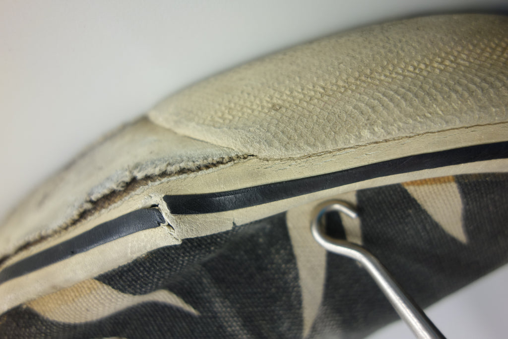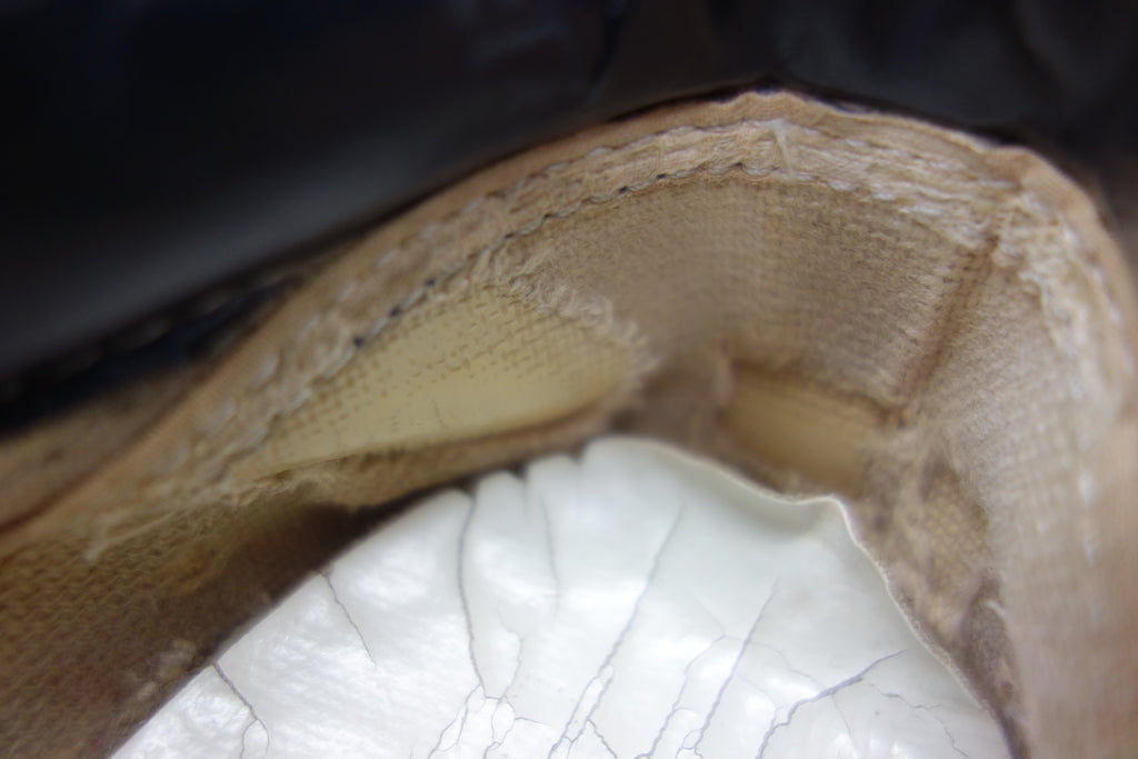decent used condition. all rubber remains soft & flexi (albeit a little dry) despite significant separation with uppers at toes creases, micro stress cracking, holes at the pinky toes & significant breakdown of the right internal heel counter. possibly fitting slightly long for US12...