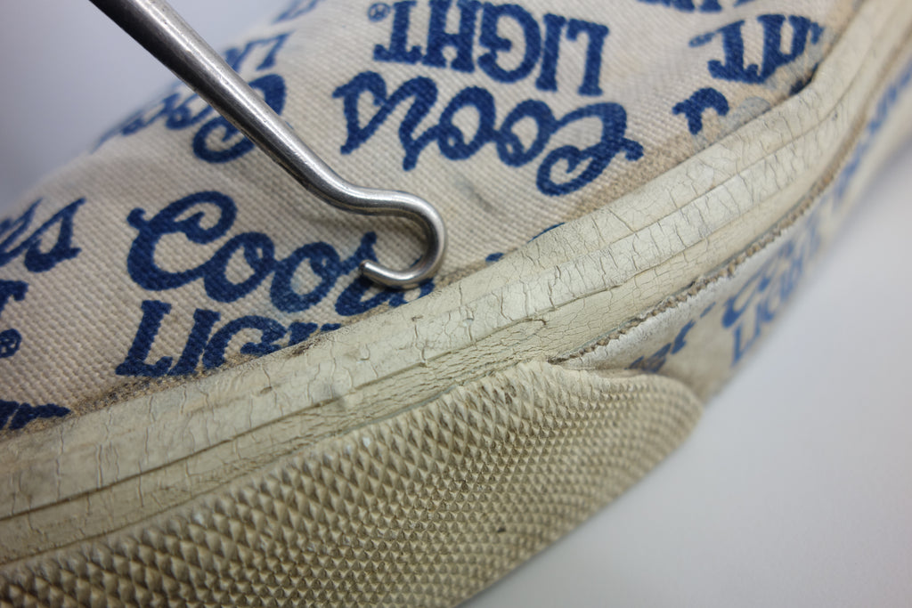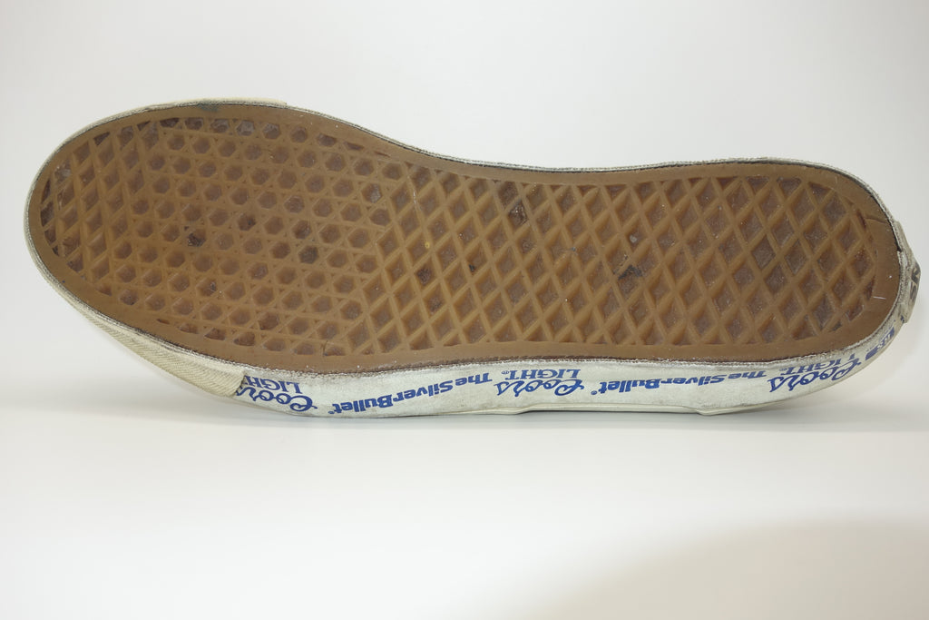 very good used condition. these saw little wear however were exposed to the elements with resulting rubber yellowing & some dryness. all rubber however remains soft & flexible despite the widespread stress cracking & jigsaw cracking to the first foxing & friction. the midosle & waffle itself is without issue. from experience these should hold up to normal wear with possible separation between uppers & rubber.... however i dont forsee them cracking. wear at own risk however