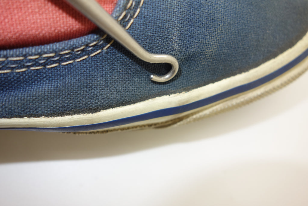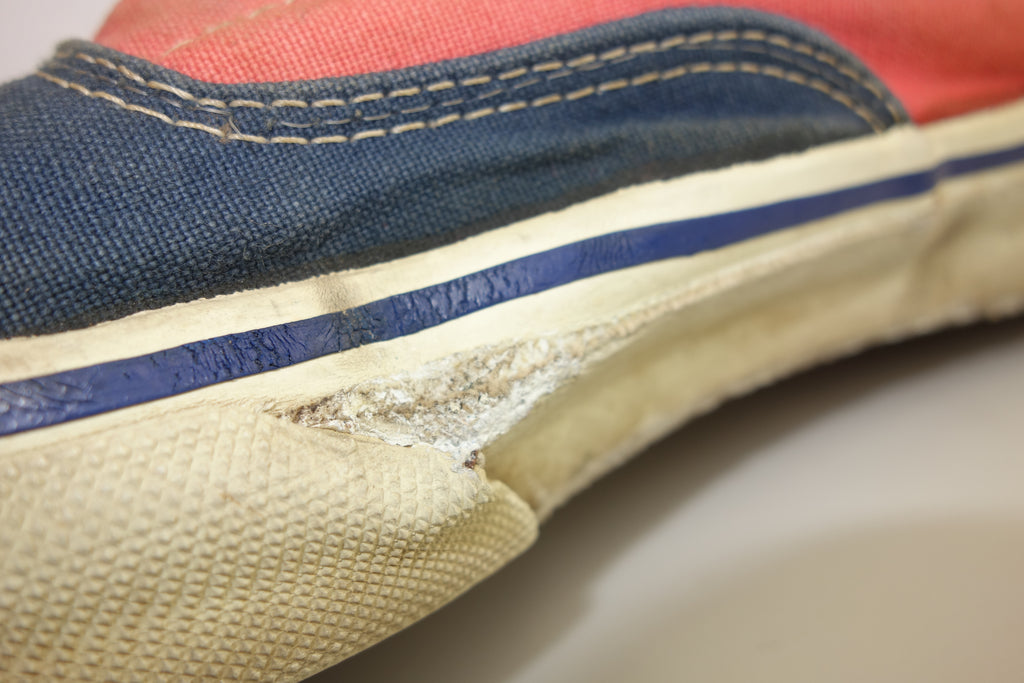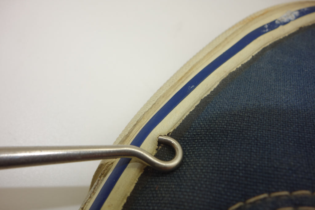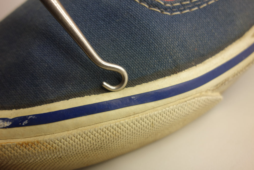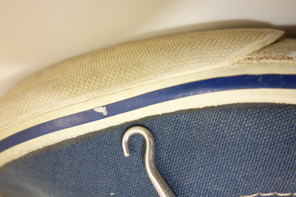 very good used condition. all rubber remains super soft & flexible. some evidence of minor wet rot to the friction & rubber sloughing however any tackiness has dried & this area will not effect wear/longevity. 1 significant misshapen dent on the medial right from crush injury during storage however remains soft & will mould back into shape with wear. laces not original.