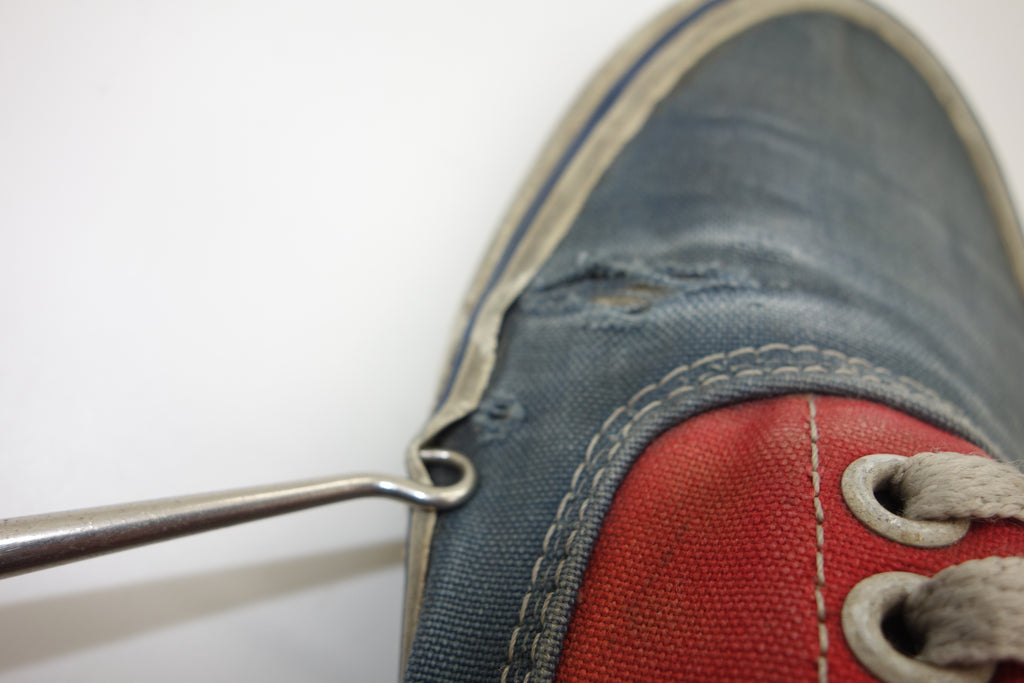 decent used condition. well-loved yes but rubber remains soft & flexible albeit somewhat dry. structurally however they are sound with no wear to insole. several holes & shredding of canvas, widespread stress cracking & rubber separation from uppers. both internal heels show wear to the lining & the internal heel counter on the right shoe remains intact. the left however is split throughout & breaking down. looks to be an easy reinforcement job however. size not visible but very confident of US9.5...
